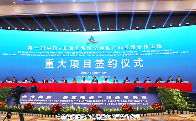开幕式后,此次博览会还举行了重大项目签约仪式,现场签署项目13个,涉及8个非洲国家,总金额超过25亿美元。