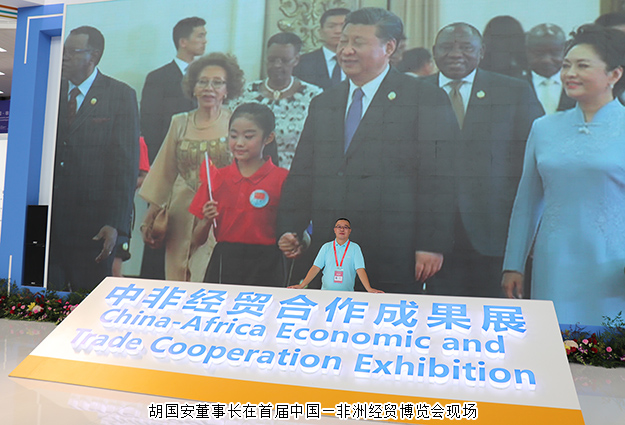 胡国安董事长参加完开幕式主体环节,深入博览会各展台进行参观考察。首届中非经贸博览会内容丰富、精彩纷呈。博览会设立中非经贸合作成果展区、非洲国家展区、案例方案展区、中国省区市展区、企业展区五大板块。同时,还开设了网上中非经贸博览会和非洲商品展销馆,作为非洲商品展示贸易平台。胡国安董事长表示,首届中非经贸博览会是历史性盛会,适应新时代中非经贸发展新趋势、新特点以及新需求,打造综合性中非经贸合作新机制、中非合作论坛经贸举措落实新平台、地方对非经贸合作新窗口,必将为中非关系发展注入强劲动力。同时,凭借着“一带一部”战略定位、“创新引领,开放崛起”战略、湘西湘南承接产业转移等关键性举措,湖南逐步成为中国内陆地区的开放新高地,雄厚的经济基础、较强的互补性和广阔的发展前景,一大批湘企走向非洲投资设厂,投资合作项目覆盖农业、矿产资源勘探和开发、对外贸易、建筑业、纺织服装和制造业等多个领域,同时也带动了湖南技术、装备、标准和服务加快走进非洲。湘非之间,经贸相融相通,尤其国家级的中非经贸博览会长期落户湖南,未来,湘非之间在相互交流中,将碰撞更多的火花,感情会越来越深,“生意”会越做越大。