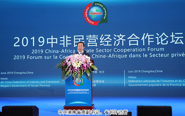 28日,胡国安董事长先后参加了非洲国家投资合作推介会、2019中非民营经济合作论坛。中华全国工商业联合会党组书记、常务副主席徐乐江主持论坛,全国政协副主席、中华全国工商业联合会主席高云龙出席活动并致辞,国家商务部副部长钱克明,塞内加尔共和国贸易和中小企业部部长迪亚塔,中共湖南省委副书记、省长许达哲等领导嘉宾出席活动。胡国安董事长与来自中非政府部门、民营企业和研究机构的代表,以“聚焦宏观层面中非制造业合作潜力、机遇,助力非洲工业化建设”“聚焦环保、电子产品、高端制造等细分领域中非制造业合作新趋势,助力非洲民生改善”等议题进行深入探讨,为搭建中非企业间友好交流和务实合作平台,促进中非企业在更高质量更高水平合作,实现互利共赢、共同发展汇智聚力。
