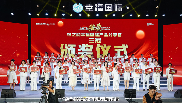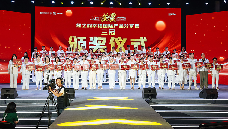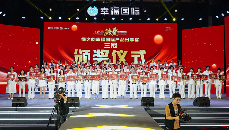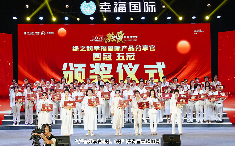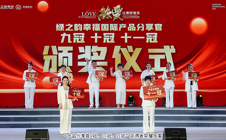 有人说,世界是由热爱者创造的,每个划时代的第一步,都是源自热爱的驱动。在“科技让中医养生进万家”这条充满挑战的路上,他们怀揣热爱,不断向前,走过了一段又一段泥泞和峥嵘,创造了一个又一个奇迹和光荣,赢得了绿之韵幸福国际“产品分享官”的称号。在现场千余名绿之韵幸福国际家人们的见证下,“产品分享官3冠、4冠、5冠”获得者身着盛装,在星光闪烁中走上舞台,共享荣耀时刻。