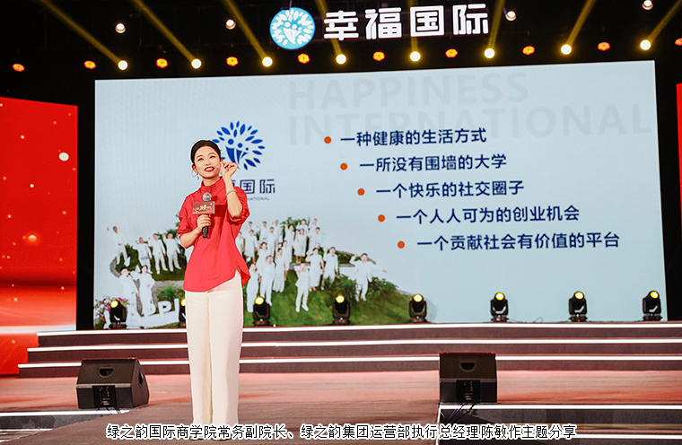只要心怀热爱,自有万般精彩。绿之韵国际商学院常务副院长、安博官网运营部执行总经理陈敏上台邀请了9位产品分享官上台分享自己与绿之韵幸福国际的故事,并向大家诠释了绿之韵幸福国际是一个在用心用情用爱关注、参与并见证着幸福代言人的成长的平台,一个充满爱的平台。