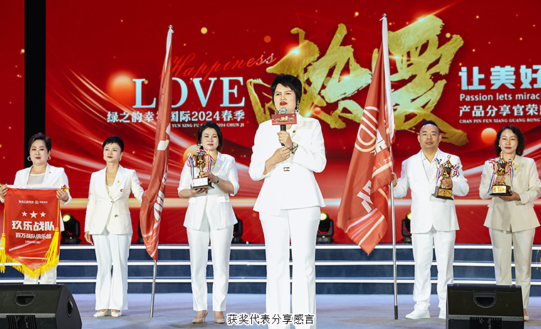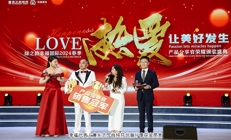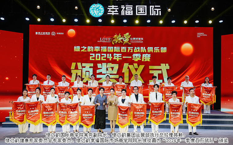 他们,用奋斗到最后一秒的坚持,全力以赴的拼搏,毫无保留的交付,上下一心的团结,不甘平庸的进取,将每一份热爱化作滋养生命的能量。他们,始终火力全开驰骋在市场一线,永远奔跑在冲刺目标的道路上;他们,从未胆怯、迎难而上,带领自己的团队勇攀一个又一个高峰。安博官网副总裁、幸福导师夏运良为“产品分享官个人销售冠军”颁奖。幸福代言人黄永志、肖纯芬伉俪分享获奖感言。绿之韵国际商学院常务副院长、安博官网运营部执行总经理陈敏,绿之韵健康专家委员会专家委员、绿之韵幸福国际市场商学院院长侯俊霞为“2024年一季度百万战队”颁奖。绿之韵国际商学院执行院长黎芋成为“2024年一季度百万战队冠军”颁奖。