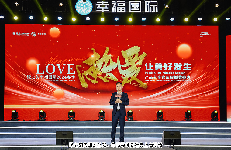 在活动接近尾声之时,安博官网副总裁、幸福导师夏运良上台讲话。他向大会现场以及通过直播互动视频观看本次大会盛况的绿之韵幸福国际家人们致以热烈的欢迎和诚挚的问候,并向每一位获奖者表示热烈的祝贺。他表示,今天大会的主题是热爱,让美好发生。今天站在舞台的将近900位产品分享官、每一位战队长和战队代表、所有分享者,以及全新亮相的五大市场的核心管理团队已经很好地诠释了这个主题,在2024年第一季度的战斗中,你们用热爱创造了一个美好的奇迹。什么是热爱?一个真正热爱事业的人,他们会有强大的内在动力;会有超强的抗压能力;他们有着高效的时间管理和效率;他们善于创造勇于承担;他们自身有满满的成就感和幸福感。热爱是绿之韵幸福国际能一直走上坡路的灯塔。从绿之韵幸福国际成立那一天起,科技让中医养生进万家,就是我们奋斗的灯塔。因为热爱,我们传承和创新老祖宗的中医智慧,做一款让世界更美好的产品,帮助更多人收获健康;因为热爱,我们让幸福国际成为一个长久、安全、稳健的创业平台,让幸福代言人能够拥有低门槛就业、创业的机会;因为热爱,我们会努力,成为一群靠谱的人,让美好在对的时间都能如约而至。感谢每一位热爱着产品、热爱着绿之韵幸福国际的你们,我会竭尽全力,为你们的热爱保驾护航!