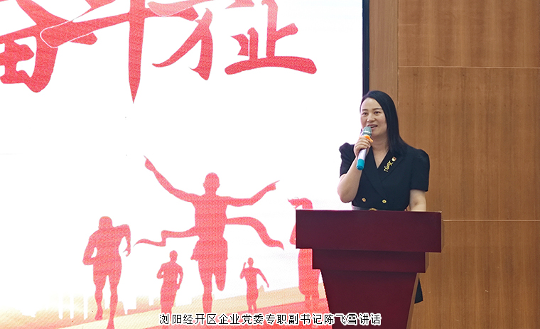 活动最后,浏阳经开区企业党委专职副书记陈飞雪讲话。她首先感谢了浏阳经开区非公党建第一片区各个对园区非公党建工作的支持。今天的“五四青年节”主题党日活动内容丰富,环节设置充实。企业之间相互的取长补短,扬长避短,能够加强横向的联络,提升企业整体的水平。希望未来能有更多企业加入到片区的活动中来,为片区的发展贡献力量,进一步增强片区的凝聚力和向心力。在一个青年员工占据绝大多数的年轻的园区,如何使青年才俊来得了、留得住、用得上、干得好,如何更好的发挥青年才俊的聪明才智,进一步推动园区高质量的发展,是我们各级基层党组织责无旁贷的任务。未来,我们也将创新方式方法,为年轻人干事创业、成长成才、施展抱负、实现梦想提供一个宽松的环境,广阔的舞台,为奋力谱写浏阳经开区非公党建高质量发展的新篇章贡献力量。