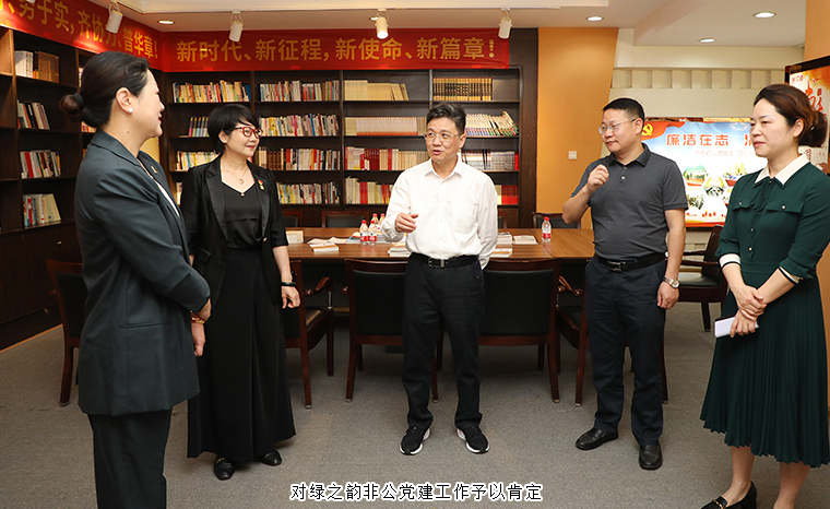 在党建活动室,党委书记刘云就企业非公党建情况向调研组一行作了详细介绍。绿之韵是一家有着“绿体红心”特质的企业,始终将非公党建工作置于发展战略高度,自2006年成立党支部,2013年获批成立党总支,2016年8月获批成立党委以来,坚持构建以集团党组织为核心,以集团工会、公益基金会为主体,注重红色基因塑造的新时代非公党建新生态,实施“指导式”“责任式”“温情式”管理,凭借着“把党员培养成骨干、把骨干培养成党员”的“双培养”工作理念,在全行业内创建了第一家党建文化教育基地,形成了具有绿之韵特色的非公党建工作品牌。