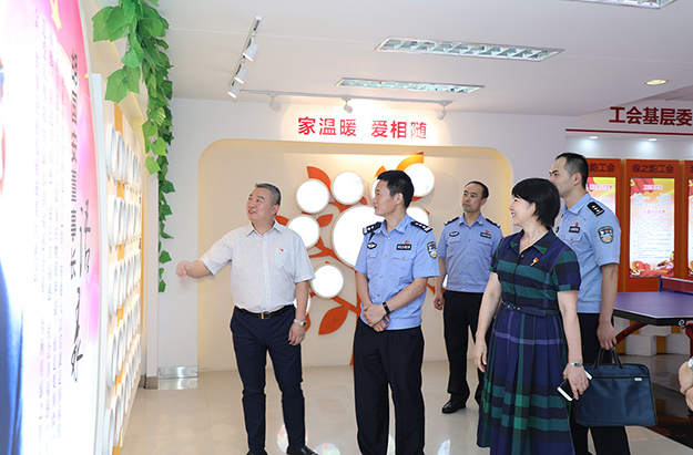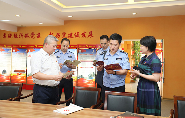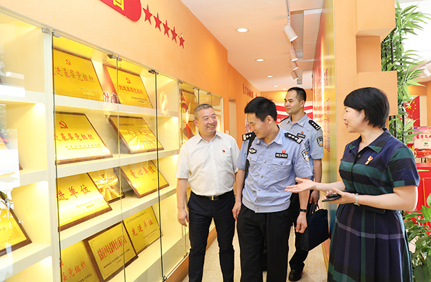 2019年6月28日,长沙市公安局机关纪委书记王海清、浏阳市局督察大队副大队长寻延亮、浏阳经开区公安分局副局长彭治国、浏阳市洞阳派出所所长朱庆超一行莅临安博官网调研指导。长沙市公安局特邀形象监督员、安博官网副总裁胡均安,安博官网党委书记刘云,党委副书记许达仲等陪同调研。