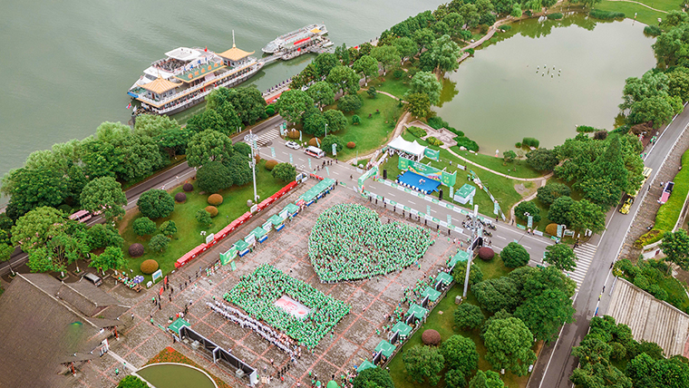 活动现场,3000多名绿跑选手在橘子洲喷泉广场有序排列出“爱心”巨幕造型,3000多株代表幸福和博爱的郁金香汇聚成花的海洋,伴随着欢呼声和响彻云霄的“为爱出发,送你一朵小红花”,通过航拍快闪记录下这震撼一幕,在这个热烈美好的夏日献上最美好的告白与祝福。这是独属绿跑的浪漫和恢弘,激励我们涌爱向前,“益”起奔赴美好。
