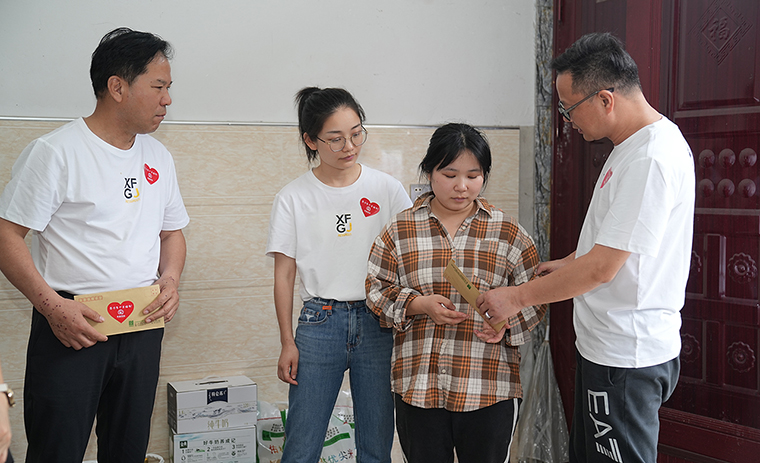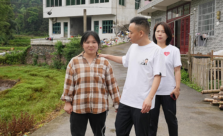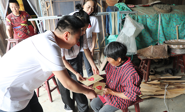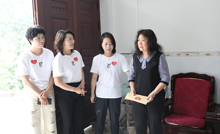 慰问组一行向大山里开了很长的路,又下车步行了很久,爬过一个小山坡才来到含海的家里。家里只有他的妻子菊姐在。今年3月,菊姐被检查出患有肺部肿瘤,安化县里医疗条件有限,他们只能租车前往省会城市长沙就医。前段时间,菊姐刚在湘雅医院做了手术,花费了10多万,现在正处于术后恢复期,需要定期复查和长期吃药。面对慰问组一行,菊姐红了眼,唯一的女儿远嫁,丈夫含海为了筹措医药费只能出去打点零工,平常都是隔壁邻居稍微照应下她,“我现在什么都做不了,连为你们泡杯热茶我都做不到……”夏总握住她的手,亲切嘱咐她要放松心情,保持乐观心态,积极面对生活。