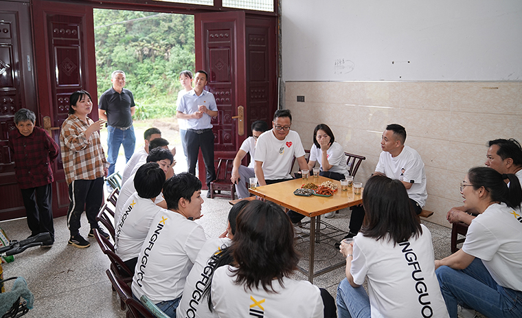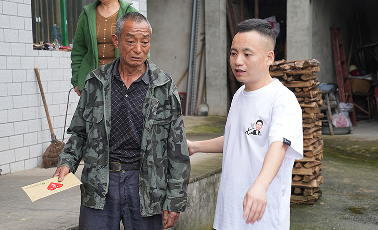家里地方小,稳军见到慰问组一行热情招呼拿椅子,让大家坐下喝口茶。他文化水平不高,找工作比较困难,原来跑车做运输,但是疫情这几年生意不好,只能偶尔跑一下网约车。家里有两个孩子,再加上70多岁的老母亲有很多基础病,妻子也只能在家里照顾好一家老小。稳军在村里是为数不多家里还住木板屋的困难户,大女儿去年刚考上大学,很多人都劝他,别让孩子考大学了,不如去上班,还能贴补家用,早点建房子。稳军心里难受,自己吃了没文化的苦,我的孩子只要能读会读,想尽办法也要供他们读完书。稳军的老母亲握着胡国安董事长的手,不住地表达感谢,感谢胡总、夏总的帮助一解家里的燃眉之急。胡国安董事长让稳军妈妈放宽心,只要孩子能学会学,我们总会让孩子有书读。