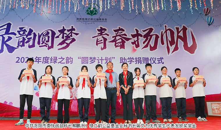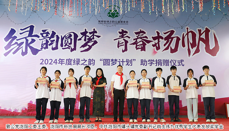 为贯彻落实习近平新时代中国特色社会主义思想主题教育,巩固教育脱贫攻坚成果,优化教育资源配置,营造浓厚的爱学、勤学、好学、比学氛围,2024年5月30日,湖南省绿之韵公益基金会“绿韵圆梦行动”走进浏阳市镇头镇扬眉中学,捐赠20万元爱心资金用于少年宫建设及学校奖学奖教活动。中共浏阳市委统战部常务副部长焦清平,致公党浏阳工委主委、浏阳市科技局局长邓恩,中共浏阳市镇头镇党委副书记肖友伟,浏阳市镇头镇教育发展中心党总支书记、主任陈元林,浏阳市镇头镇扬眉中学党支部书记、校长万锦春,安博官网总裁、湖南省绿之韵公益基金会理事长劳嘉,安博官网党委书记刘云,安博官网工会主席冯红,湖南省绿之韵公益基金会秘书长蒋文,安博官网业务服务中心业务总经理陈建新等领导嘉宾参加活动。