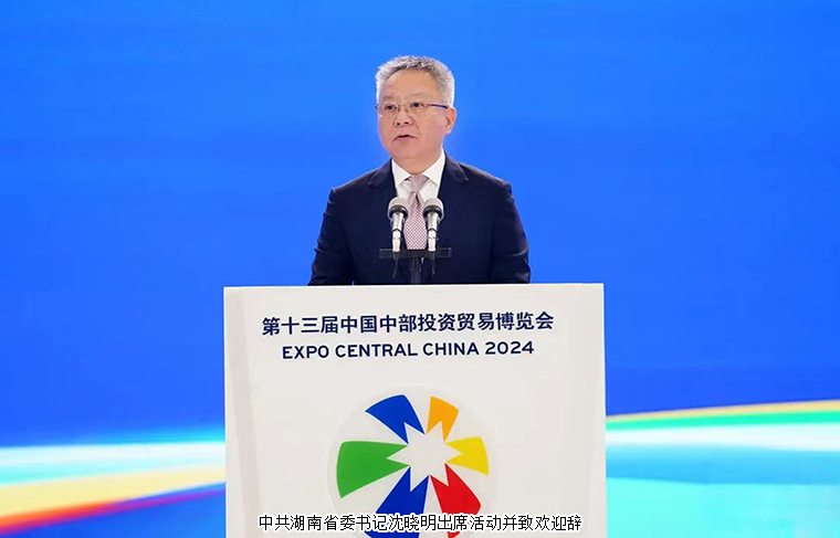 中共湖南省委书记沈晓明代表湖南省委、省政府向出席本届中部博览会的来宾表示欢迎。他说,习近平总书记今年3月亲临湖南考察并在长沙主持召开新时代推动中部地区崛起座谈会,最近又亲自推动出台《新时代推动中部地区加快崛起的若干政策措施》,为在更高起点上深入实施中部地区崛起战略提供了重大机遇、注入了强劲动力。在这个特殊时间节点上举办的第十三届中部博览会,必将有力推动中部地区与各方合作迈上新台阶,在“双向奔赴”中实现互利共赢。湖南将与中部地区各省一道在培育发展新质生产力上协同发力,共同做好以科技创新引领产业创新这篇大文章;在对接融入国家战略上协同发力,努力让国内外各类生产要素在中部地区实现最优配置、产生聚合效应;在深化改革开放上协同发力,持续降低企业综合运营成本,打造市场化法治化国际化的一流营商环境。