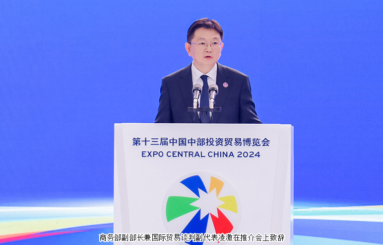 商务部副部长兼国际贸易谈判副代表凌激在推介会上致辞。他表示,中部地区发展潜力巨大,合作空间广阔,将为中外企业带来更多市场机遇。中部博览会已成为实施中部地区崛起战略和中部六省扩大国际经贸合作的重要平台。商务部将一如既往支持中部六省发挥区位和科创优势,有序承接产业梯度转移,加大吸引和利用外资,加快中非经贸深度合作先行区、自贸试验区等开放平台建设,不断扩大高水平开放。希望大家借此机会增进了解,推动高质量发展合作,共享中国市场新机遇,共同谱写中部地区崛起新篇章。