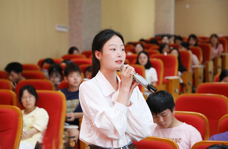 他回忆起少时的家境贫寒,深情讲述了自己30多年前从益阳安化小九溪村,追寻梦想,屡战屡败,屡败屡战,从一无所有,到少年得志,从坠入低谷,到东山再起,用自己的双手改变命运的故事。他始终坚守“走出大山”的梦想,在实现自我价值的同时,21年风雨兼程,捐建了11所希望小学、400多场爱心活动、累计捐款捐物8600多万元。“常怀感恩之心,常为感恩之行。我们要感恩父母的养育;感恩老师、感恩学校的培养;感恩这个美好的时代。”他希望,同学们能够保持对知识的渴望和持续学习的态度,常怀感恩之心,坚定前行,活出自己的色彩。随后,专题讲座进入互动提问环节,大学生们积极踊跃地提出自己的疑惑和问题,胡国安董事长耐心细致地逐一作答,并鼓励青年学子们不仅要科学规划自己,更要在创业的路程中肩负责任,做一个对社会有用的人。