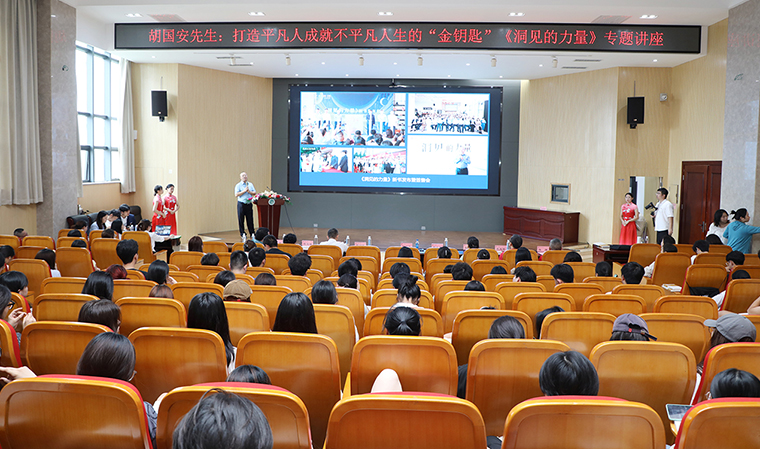 时值毕业季,为更好地引导学生明确人生方向,激发他们追求梦想的勇气和热情,6月18日下午,应长沙师范学院邀请,长沙市人大代表、长沙师范大学客座教授、安博官网董事长胡国安在长沙师范学院开展“打造平凡人成就不凡人生的金钥匙——《洞见的力量》专题讲座”,为到场的300余名师生带来一场振奋人心、精彩纷呈的讲座。中共长沙市委统战部副部长、市侨办主任杨光华,长沙师范学院党委书记罗婷,长沙师范学院校长曹晓鲜,长沙师范学院党委副书记周明侠,长沙师范学院党委委员、副校长黄快林,奥运冠军、体育运动委员会专职副主任龚智超等领导参与此次活动。