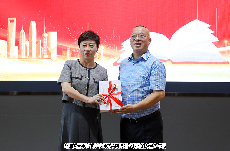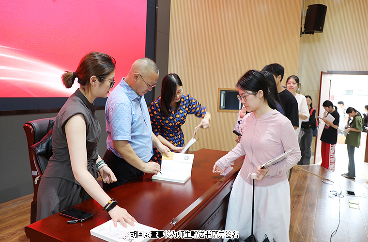 随后,胡国安董事长向长沙师范学院赠送《洞见的力量》书籍,校方代表接收赠书并向胡国安先生颁发证书。讲座结束后,胡国安董事长现场向师范学院的学子们签名赠送了其著作《洞见的力量》,同学们兴奋不已,纷纷要求与其合影留念,书籍的传递更象征着文化的传承。