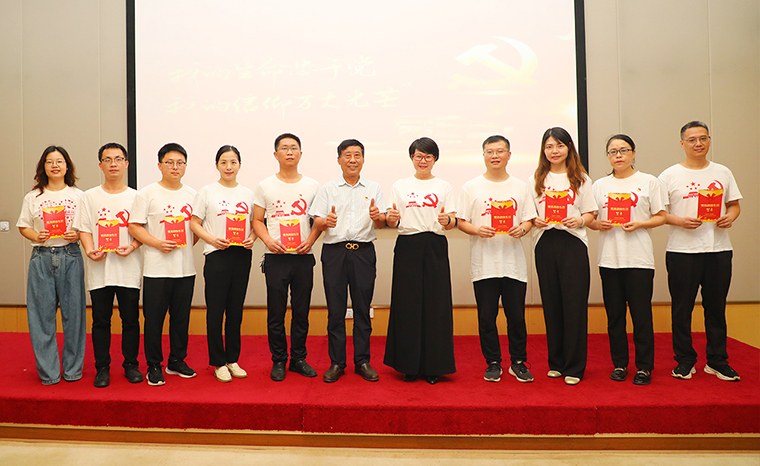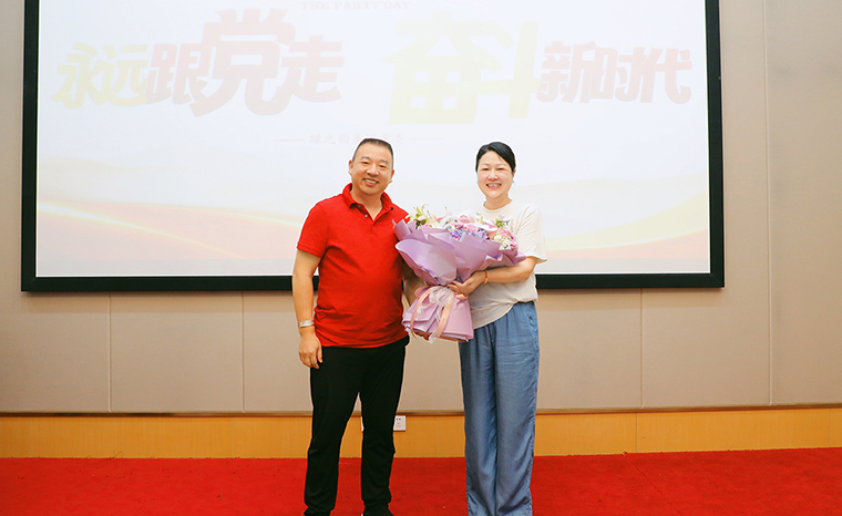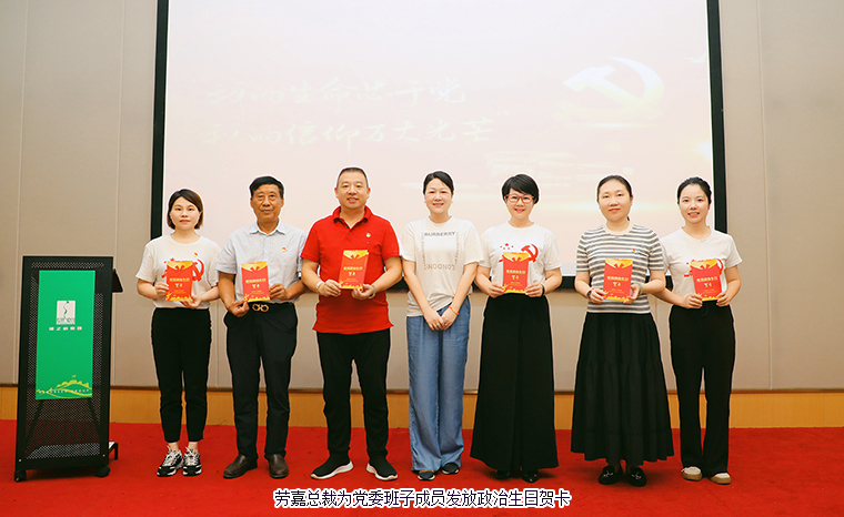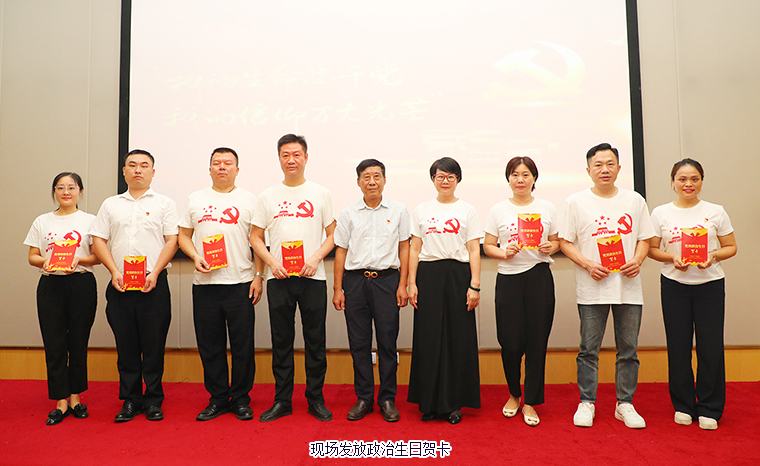 安博官网党委委员、业务服务中心业务总经理陈建新担任活动主持。活动伊始,与会党员通过主题视频学习建党节由来,温习党性知识,共同回顾中国共产党波澜壮阔103载的奋斗历程。会上,安博官网党委委员杨丹作上半年党委各支部活动开展情况汇报及下半年党委工作安排。随后,大会举行新党员宣誓仪式。党员代表梁淑琳、罗永帅作分享,安博官网第二党支部书记陈建新、保健日用品党支部书记杨丹分别为预备党员罗琼蕾、许长征佩戴党徽、发放党章。2024 年入党积极分子代表李军作分享发言。活动现场,安博官网党委为所有在司党员发放政治生日贺卡,合唱《没有共产党就没有新中国》,共同庆贺党的生日,现场一片浓厚的爱国爱党氛围。