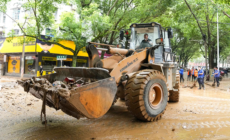 雨停、水退,排涝、清淤,恢复供电……连日来,平江当地正齐心协力开展灾后重建,全力以赴救灾挽损。目前,全县城区主干道路积水都已清理,全部恢复通行,中心城区还有部分小区正在抓紧排涝,预计近日可以恢复正常。洪水退去,民房、河道边和田地里留下了没过膝盖深的淤泥。当地镇村干部、医护人员和志愿者等都忙碌在清淤一线,合力一心开展灾后清理和防疫消杀工作。