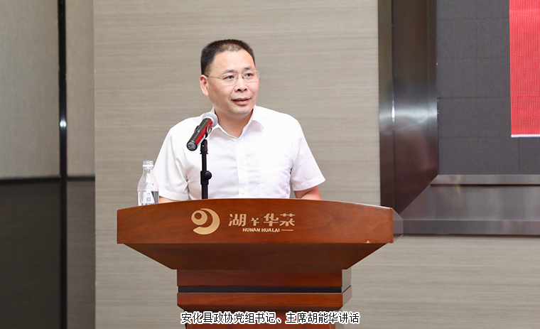 安化县政协党组书记、主席胡能华出席会议并讲话。他首先对长沙市安化商会回家乡开展活动表示热烈欢迎。他表示,商会各位乡友创业他乡有作为,服务老乡有情义,回报家乡有担当,尤其是去年在长沙为举办“首届安化黄精之夜”活动出资又出力,今天又把信息和资源带回来,体现了对家乡的深厚感情。他指出,当前的安化,交通越来越畅、产业越来越旺、生态越来越好、城镇越来越靓、队伍越来越强,诚挚希望各位乡友一如既往地支持家乡、推介家乡,吸引和带动更多的有识之士投资家乡,振兴家乡,衷心祝愿乡友企业家继续把企业做大做强,不断擦亮“安商”品牌,为自己赢得成就,为家乡赢得赞誉,殷切期盼大家能常回家看看,共品安化诗意生活,共享发展机遇,家乡将以最大的诚意、最好的服务、最大的努力,竭诚为所有返乡创业者提供发展条件、创造成长空间。