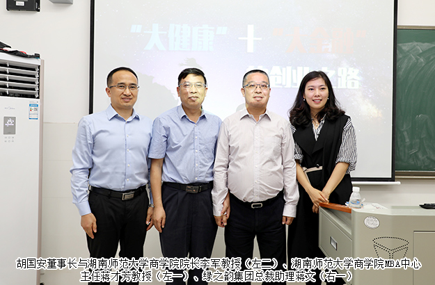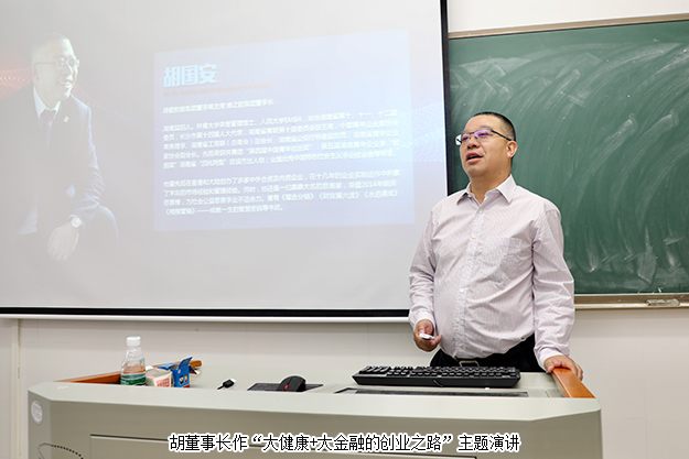 2019年6月23日,湖南师范大学客座教授、安博官网董事长胡国安应湖南师范大学邀请,为“湖南师范大学第六届MBA企业案例大赛暨全国管理案例精英赛校园突围赛”作评委主席。并以《“大健康”+“大金融” 的创业之路》为主题,为湖南师范大学2018级MBA学员、金融硕士、工商管理研究生100余人带来一场振奋人心、精彩纷呈的讲座。通过分享自己真实的创业故事,鼓励学员们不要因为迷茫而虚度光阴,在未来的生活中,永远不要停止前进的脚步,不放弃最初的梦想。