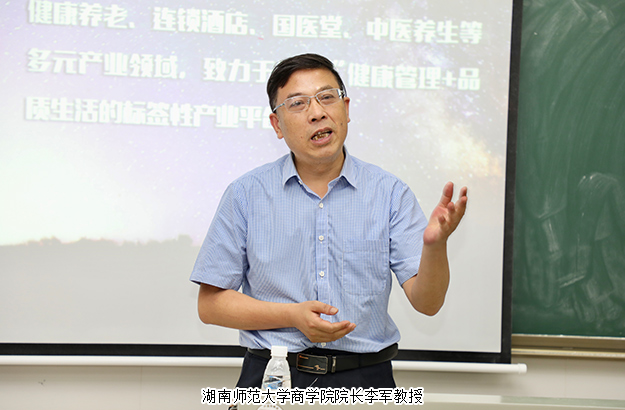 讲座最后, 湖南师范大学商学院院长李军教授作总结发言。他表示:胡国安董事长是湖南师范大学客座教授,是绿之韵的创办者,是中国商界白手起家创业成功的传奇人物,积累了丰富的市场经验和管理经验。他的创业故事真实而感人,鼓励着很多人发奋图强,坚守自己的梦想,为实现自我价值而努力奋斗。希望同学们能从今天的讲座中得到启发,在未来的就业环境中寻找适合自己的支点,注重综合素质的培养,关注新科技、新领域,尤其是互联网在传统行业中的发展趋势,努力塑造自我,提升综合实力,开启属于自己的事业辉煌。