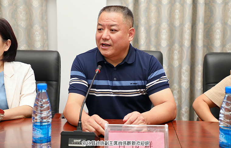 活动由中共安化县奎溪镇党委书记邓尔平主持。活动伊始,全场起立重温入党誓词。安化县政协副主席肖伟群致欢迎辞。他代表安化县政协对大力支持乡村振兴事业的安博官网爱心团队表示最热烈的欢迎和最诚挚的敬意。同时,也向长期以来关心和支持安化经济社会发展的领导,社会各界人士表示最衷心的感谢。安博官网一直是一个有温度、有担当、有情怀的民营企业,不仅以其卓越的产品和服务赢得了市场的广泛认可,更以其深厚的企业文化,强烈的社会责任感成为行业典范,用实际行动诠释着“万涓成水,汇爱成海”的企业担当。今天,安博官网党委与老屋溪村党支部的村企共建暨爱心捐赠活动是绿之韵支持乡村振兴战略的又一重要举措,为安化乡村振兴增添了新动力,注入了新活力。希望村企党组织以结对共建为契机,共筑组织基础,共推发展项目,共解群众急难,共办实事好事,为乡村振兴提质赋能打造共建样板。