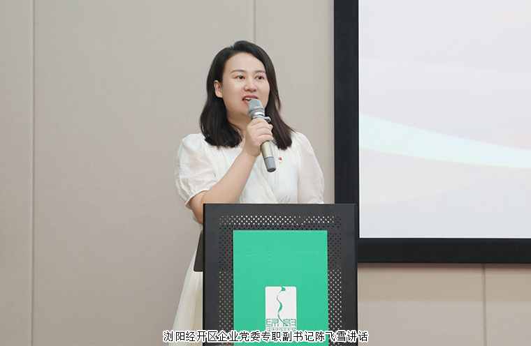 活动最后,浏阳经开区企业党委专职副书记陈飞雪讲话。她首先感谢了浏阳经开区非公党建第一片区对园区非公党建工作的支持。今天是9.30烈士纪念日,她向大家分享了自己的曾祖父作为一名烈士英勇牺牲的故事,说到动情之处,声音哽咽。随后,她提出了三点要求:一是家国情怀需要弘扬传承。家国情怀在增强民族凝聚力、建设幸福家庭、提高公民意识等方面都有重要的时代价值。家国情怀的核心是爱党、爱国,是非公企业需要大力倡导的,是基层党组织需要大力弘扬的。蓝思科技、绿之韵、东风药业等园区优秀企业坚持抓党建促发展不动摇,注重厚植党员群众的家国情怀,实现了党建强、发展强的目标。二是企业文化需要贴近员工。企业厚植家国情怀的一个重要抓手就是企业文化欣欣向荣,文体活动丰富多彩,就是接地气、有底气、聚人气、冒热气。三是片区活动需要常抓常新。随着浏阳经开区非公企业党组织的不断增加,各个片区党组织一起策划活动,一起联谊交流,一起进步提升,取得了非常好的效果。她希望,第一片区的党建活动越来越精彩纷呈,越来越活力奋发,用实际行动为奋力谱写浏阳经开区非公党建高质量发展的新篇章贡献力量。