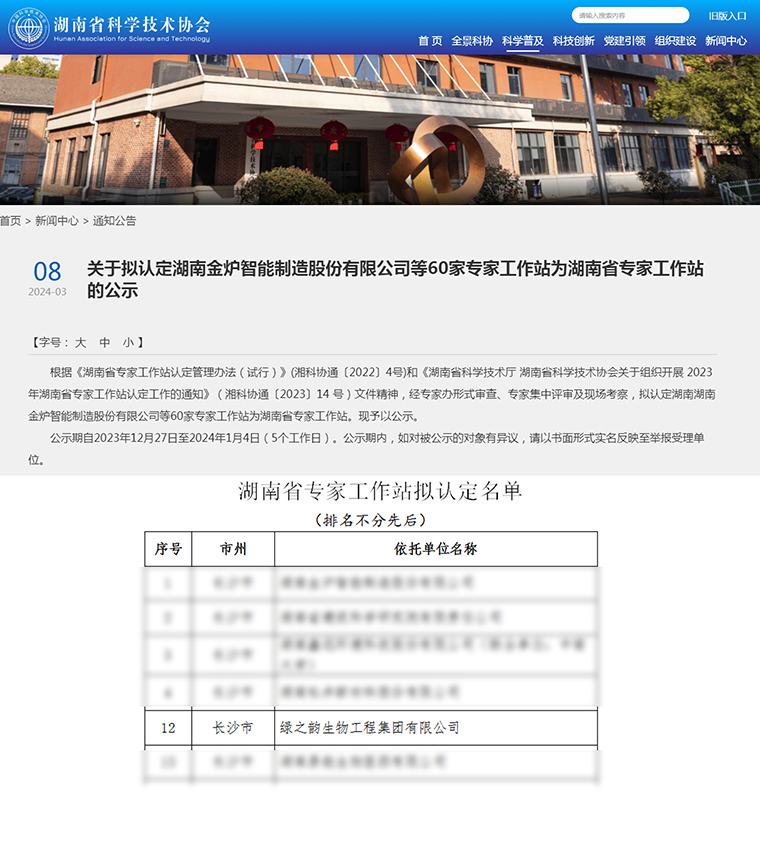 近日,根据《湖南省专家工作站认定管理办法(试行)》(湘科协通(2022〕4号)和《湖南省科学技术厅 湖南省科学技术协会关于组织开展2023年湖南省专家工作站认定工作的通知》(湘科协通〔2023〕14号)文件精神,经专家办形式审查、专家集中评审及现场考察,认定了66家湖南省专家工作站,安博官网获评上榜。这一荣誉不仅是对安博官网在科研创新、人才引进及培养方面工作的高度认可,也标志着安博官网在推动地方经济和社会发展中所作出的努力得到了省级层面的支持。