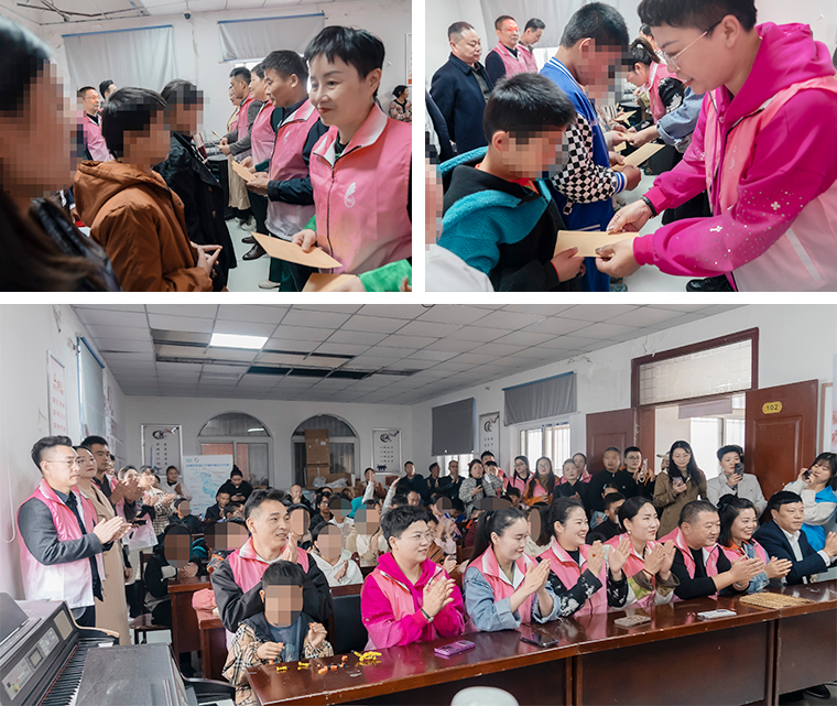 在全体人员的见证下,绿之韵碧波庭水莲花志愿者们亲手将装有现金的信封依次递到了40名受助学生的手中,并亲切地与孩子们拥抱,鼓励他们好好学习,孩子们的脸上洋溢着幸福的笑容,家长们的感激之情溢于言表。本次活动也在这温暖氛围中圆满落幕,让公益的种子与年轻的身体共同生长,让生命之芽在温暖的光芒中破土而出。