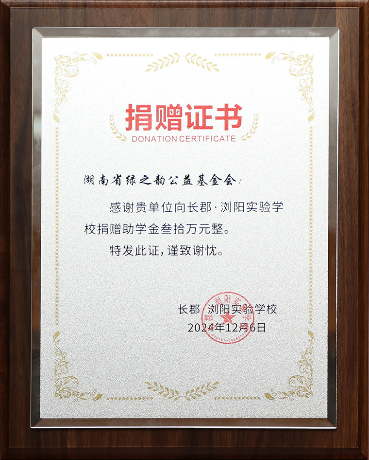 劳嘉理事长表示,教育帮扶一直是绿之韵公益基金会的重要关注点之一。在胡国安董事长的倡导下,公司始终坚持承担社会责任,坚守“让善行成为生命习惯 ”的发展理念,在绿之韵第五个五年规划发展时期,集团捐资1000万设立“绿韵圆梦”爱心基金。希望每一位获得爱心奖学金帮助的学生都可以坚定理想信念、奋发成才,未来在建设浏阳、投身乡村振兴、回报社会的实践中放飞青春梦想。在浏阳经开区企业党工委、党群局、政协委员工作室等组织领导下,我们也将认真履行企业的责任与担当,关注社会民生和教育事业的发展,希望这份善举影响和带动更多爱心人士和企业积极参与爱心助学行动,共同为孩子们创造一个更加美好的未来,照亮更多孩子的梦想之路。
