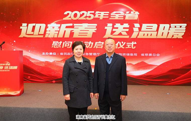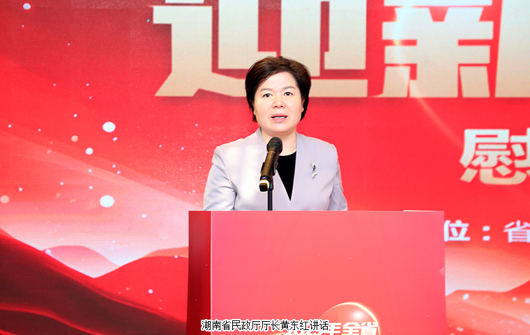 活动伊始,湖南省民政厅厅长黄东红致辞。她表示,“中国式现代化,民生为大。”习近平总书记指出,要切实保障和改善民生,尽力而为,量力而行,多干顺民意、惠民生、暖民心的实事,扎实解决人民群众急难愁盼的问题。春节将至,帮助困难群众温暖过冬、祥和过年是各级党委政府的最大牵挂。湖南省民政厅联合省委宣传部、省应急管理厅、省粮食和物资储备局等相关单位连续21年开展“迎新春 送温暖”慰问活动,这是增进民生福祉、助力人民实现美好生活向往的具体实践,也是爱心企业勇担责任、回报社会的生动体现。2025年,站在新起点上,希望全省民政部门要精准对接困难群体的多元诉求,创新救助帮扶的模式,确保关怀不遗漏,让爱的需要送到灯火阑珊处。希望全社会行动起来,共同奉献爱心,共同关心困难群众,共绘湖南温暖民生新画卷!