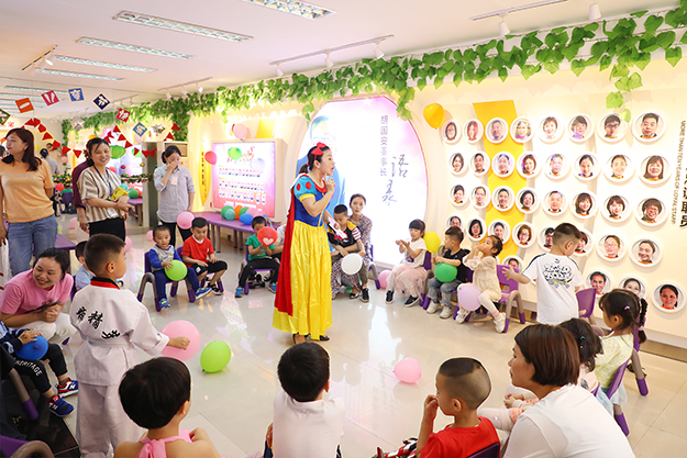 活动开始后,孩子们在小板凳上排排坐,白雪公主装扮的主持人站在舞台中央,让孩子们挨个走到舞台中央作自我介绍。有的孩子活泼好动,有的腼腆羞涩,孩子们天真无邪的样子逗得现场笑声连连~