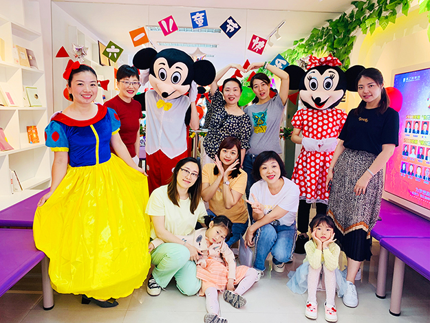 活动开始前,换上可爱的米奇和米妮服饰的绿之韵的爸爸妈妈们,一出场便受到了“绿二代”们的关注。小手左摸一下耳朵右捏一下鼻子,求合影,要抱抱,玩得那叫一个不亦乐乎。