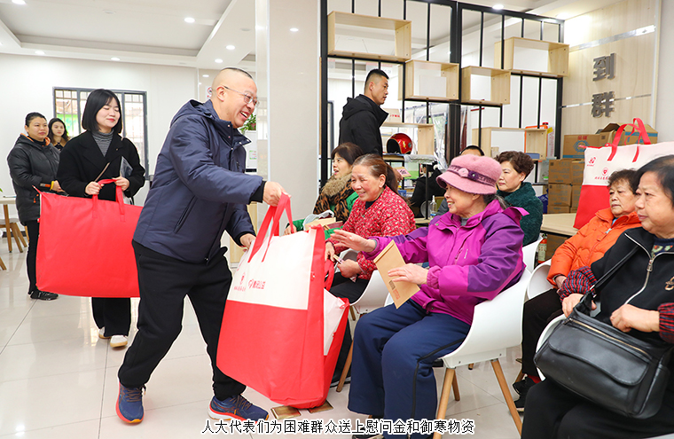 寒冬依旧,温暖不止。随后,砂子塘社区党委书记、主任吴丽娜带领胡国安代表进行入户走访慰问。每到一处,人大代表们与困难群众亲切交谈,嘘寒问暖。在伤残困难老人朱阿姨的家里,一进门,映入眼帘的就是逼仄局促的居住环境,家中仅有老人与儿子相依为命,老人常年遭受心衰、脑衰的折磨,只能卧床养病。老人的儿子智力缺陷,被判定为智力二级残疾,仅仅能够勉强维持日常自理,老人微薄的退休工资用于维持个人的医药费和两人生活开支,难以为继。看到人大代表们来到家里,老人非常欣喜,艰难起身迎接。胡国安代表快步上前扶老人坐下,关切询问老人的健康状况与生活需求后,送上新春慰问金、御寒物资及新年祝福,鼓励她乐观地面对生活的种种挑战,日子一定会越过越好。