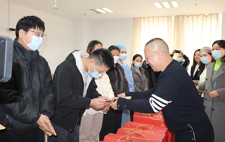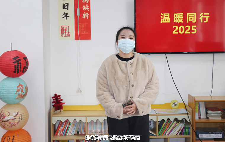 “谢谢大家的关爱,满满的感动,也提前感受到了春节的温暖。”小宇妈妈激动地说道。来自四川的小宇,自2024年4月起便在湖南省人民医院接受造血干细胞移植治疗,前后花费了二三十万,由于术后一直需要定期复查,一家人便租住在医院附近,也准备在长沙过年。劳嘉理事长为小宇送上慰问金和亲切祝福:“绿之韵公益基金会一直关注青少年、儿童的健康成长,开展绿+儿童关爱项目。早在2014年我们就在省人民医院建立了绿之韵爱心病房。今天再次来到省人医,希望能让这些孩子们感受到社会的关爱,勇敢地与病魔抗争,在新的一年里迎来美好的生活。”医院病房里,孩子们稚嫩的笑脸,家长们感激的目光,爱心志愿者们忙碌而热情的身影,交织成一幅温暖人心的画面。