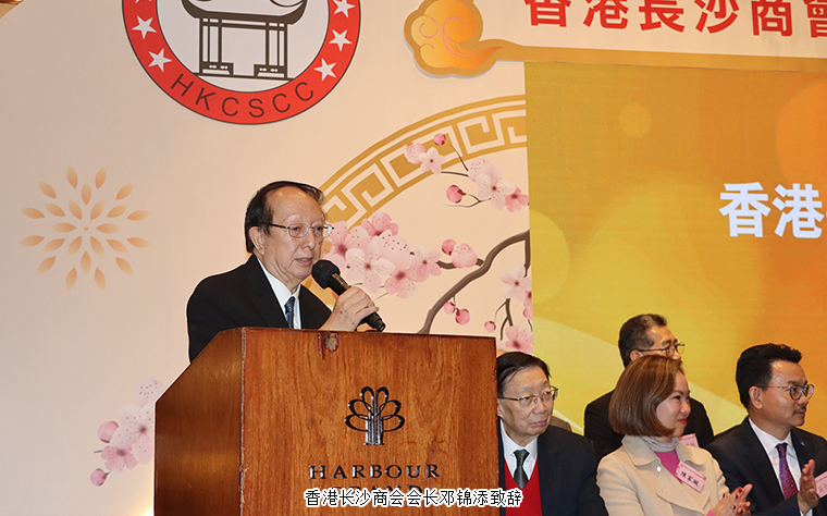 在熠熠生辉的会场内,各界嘉宾云集于此,共同见证了香港长沙商会新老交替这一历史性的传承进程,也一同展望其未来发展的崭新篇章。随着换届选举结果的揭晓,新一届领导集体正式亮相,胡国安董事长连任香港长沙商会常务副会长,担当起引领商会奋进的重任,承载着推动湘港经贸合作进阶的深切期许。香港长沙商会会长邓锦添在讲话中回顾了商会的发展历程。自成立以来,在湘港两地政府的支持和企业家的努力下,商会成功举办多场经贸交流活动,推动了两地企业的深度合作。他表示,新一届领导集体将传承商会的优良传统,创新服务模式,整合湘港两地优势资源,为会员企业提供更全面的支持。
