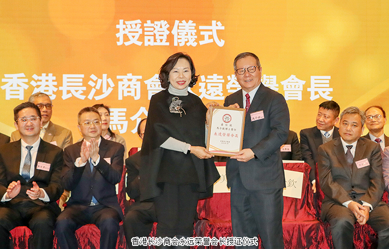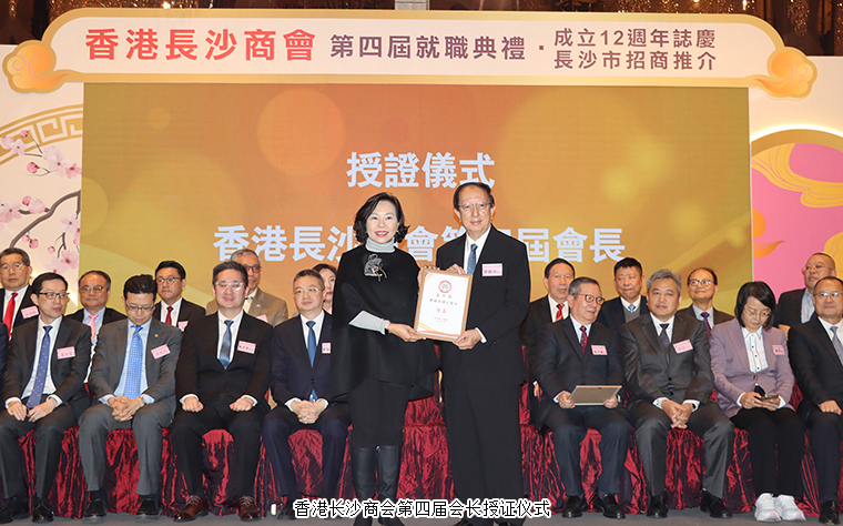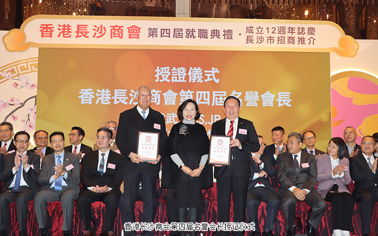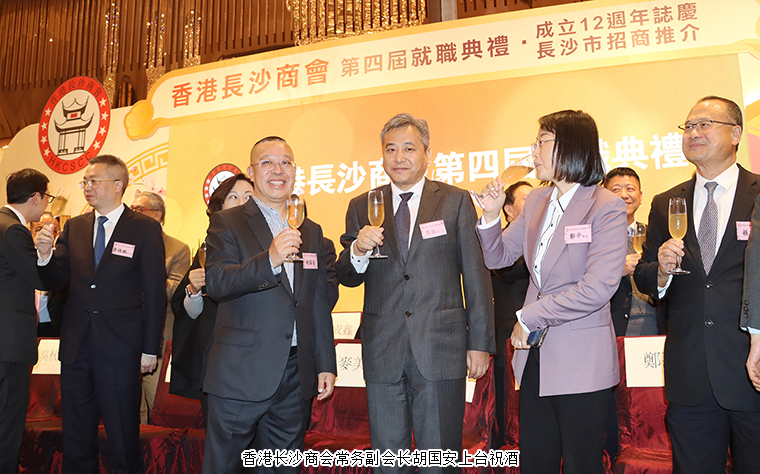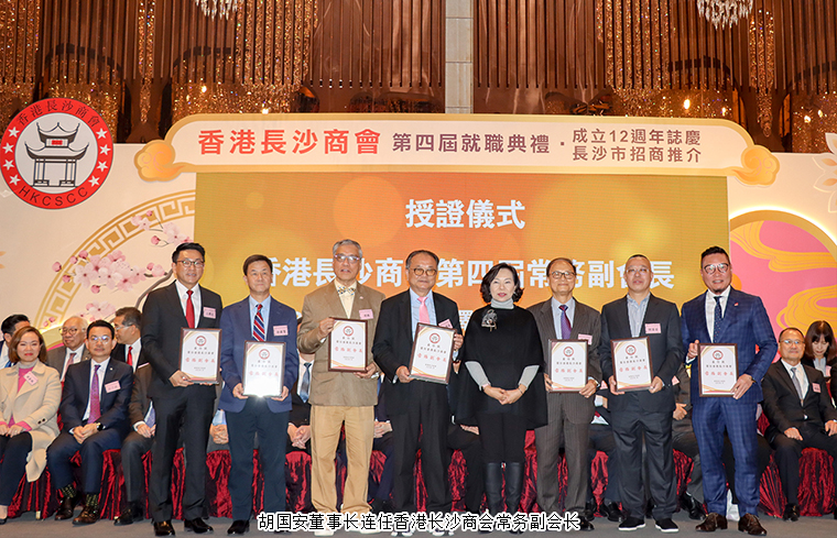 2025年1月24日,香港长沙商会第四届就职典礼暨成立12周年庆典在香港盛大举行。香港特区政府民政及青年事务局局长、太平绅士麦美娟,香港中联办经济部副部长兼贸易处负责人周强,香港特区政府商务及经济发展局副局长陈百里等;长沙市人民政府副市长、市工商联主席康镇麟,长沙市商务局党组书记、局长郑平,长沙市人民政府驻深圳办事处主任比干则勇,长沙市芙蓉区委副书记、区长蒋君,长沙市工商业联合会党组成员、副主席王准,长沙市望城区人民政府党组成员、副区长蔡哲等;香港长沙商会会长、香港佳宁娜集团控股有限公司主席马介钦,香港长沙商会创会会长、香港立基环球有限公司董事长邓锦添,湖南省长沙市光彩事业基金会理事长、香港长沙商会常务副会长、安博官网董事长胡国安受邀出席活动,与众嘉宾汇聚一堂,以香港为纽带,深度挖掘湘港两地经贸合作潜力,携手开启两地交流合作新篇章。