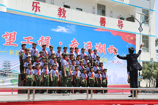 捐赠仪式结束后,长沙市青少年宫组织艺术团的小演员们与苗儿滩学校的学生们共同献上了一场丰富多彩的文艺演出。孩子们用动人的歌声、欢快的舞姿、动感的表演,充分展现了他们朝气蓬勃、昂扬向上的精神风貌。