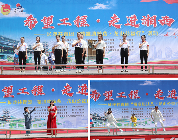 2019年5月21-23日,希望工程·走进湘西——长沙共青团“精准助扶贫·龙山公益行”活动在龙山县苗儿滩镇九年制学校举行。共青团长沙市委副书记康然、何平,长沙市直机关工委委员、宣传部长陈国胜,共青团湘西州委副书记王丹子,中共龙山县委常委、县人民政府副县长张红民,长沙市青基会羊舒麟等领导出席活动。安博官网党委书记刘云及爱心企业、社会爱心人士、受助学生代表等1000余人参加本次活动。