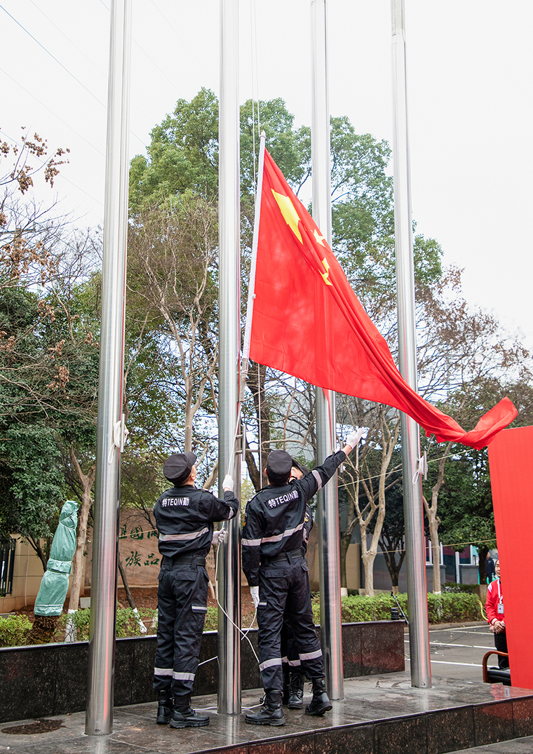 上午9点28分,开工仪式准时举行。五彩的礼花绚烂升空,礼炮声声,回溯着员工们在工作中的拼搏与奋进,此刻汇聚成强大的精神力量,鼓舞着全体员工,在新的征途上,以无畏的勇气和坚定的信念,向着新目标全力进发。伴随着雄壮的国歌声,鲜艳的五星红旗冉冉升起,绿之韵家人们向国旗行注目礼,内心激荡着对伟大祖国的无比热爱和崇敬。