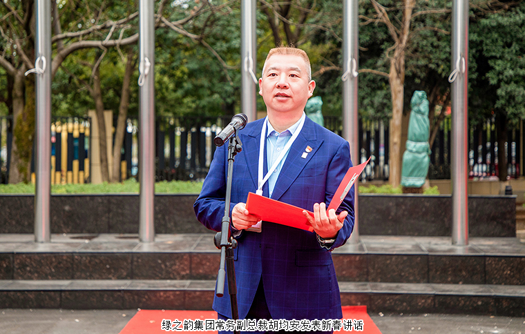 在全场热烈的掌声中,胡均安常务副总裁发表新春讲话。他首先代表集团公司向现场的所有家人们送上新春的祝福。在胡国安董事长打造“学习型企业”和“幸福感企业”的精神指导下,从2012年开始,我们已经成功举办了12届新春开年训。12年光阴流转,开年训已经成为绿之韵的一种光荣传统和企业文化符号,一路见证着企业的发展与壮大、我们的成长与进步。他表示,新,是今年的主旋律。新的办公大楼、新的品牌形象、新的目标规划,新的激情梦想,汇聚成一个新的未来。随着长沙市区绿之韵中心的正式投入使用,今年的开年训或许将以举办地浏阳总部收官之作的重要意义,写入绿之韵的历史。“我们既是企业里程碑式乔迁的光荣见证者,也是企业历史的是伟大书写者。”他希望大家倍加珍惜本次开工仪式和宝贵的培训机会,真正做到学以明志,学以致用,以崭新的面貌、昂扬的斗志,投入到新一年的工作中,遇见更好的自己,共创绿之韵更加美好的明天。