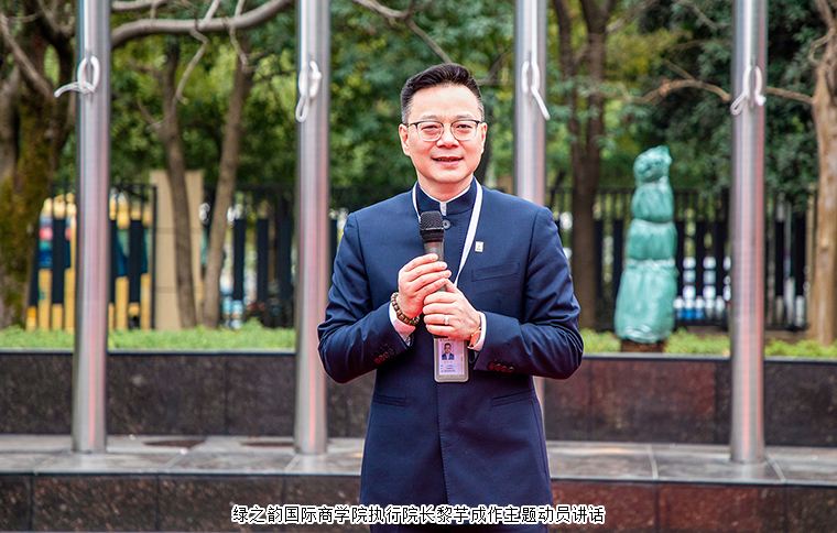 开工仪式上,绿之韵国际商学院执行院长黎芋成作主题动员讲话。他分享三个词。第一是幸福。幸福,是一种强大的驱动力。它不像高压的任务,让你被迫前行,而是像春日暖阳,温柔地推着你主动奋进。当我们真正热爱这份工作,从工作成果里获得成就感,内心就会被幸福填满,这种幸福会转化为源源不断的动力,让我们面对难题时,不再望而却步,而是积极寻找解决办法。第二是接纳。不管外界怎么变化,内心淡定从容接纳一切的发展,永远怀一颗乐观心态,不断地去创造。就像《哪吒之魔童闹海》中的超燃台词:若前方无路,我便踏出一条路;若天地不容,我就扭转这乾坤。作为绿之韵人一定要有这样一种积极乐观的态度和精神。第三是坚持。不断保持初心,保持恒心,这是我们在激烈市场竞争中脱颖而出、实现长远发展的关键。相信只要我们齐心协力,行动并坚持,始终保持初心与恒心,就没有克服不了的困难,没有实现不了的目标。2025年已至,让我们紧紧握住心中那团热爱的火焰,怀揣创新的火种,步履不停。只要热情不减,创造不止,定能在新的一年创造更大的辉煌。请相信,时间会见证我们的成长,时间会给予我们坚持的答案。