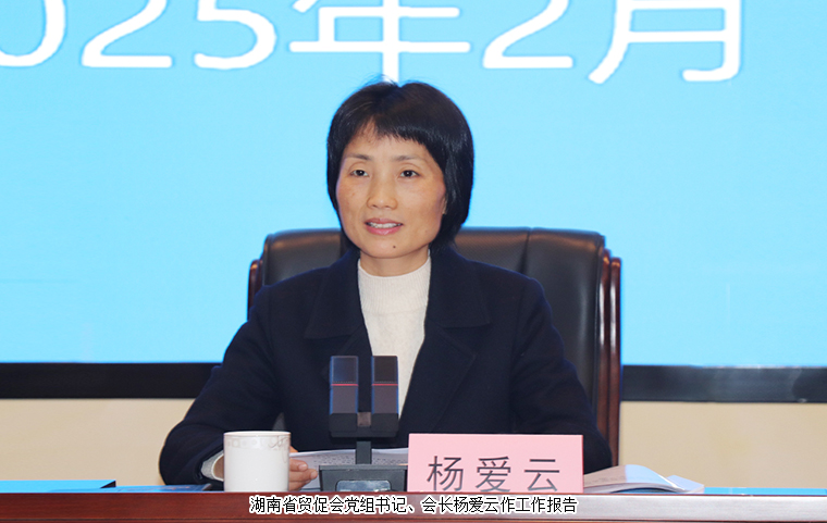 湖南省贸促会党组书记、会长杨爱云作贸促工作报告。她表示,2024年全省贸促事业高质量发展取得新成效,服务湖南对外开放大局彰显作为,推动企业开拓国际市场取得良好效果,推动湘商回归外商入湘成果较好,助推贸易主体扩容增效积极有为,提升服务保障成效明显。2025年,要坚持稳中求进、以进促稳,坚持向外发力,助企出海,全面服务稳外贸稳外资;要坚持向下扎根,为企排忧,全面提升服务企业成效;要坚持向内用功,锤炼本领,全面提升专业化工作能力。2025年将重点在以下几个方面发力:一是用改革精神和严的标准推动全面从严治党向纵深发展。二是全力以赴办好重大经贸活动。三是真抓实干推动外贸保稳提质。四是多措并举助力稳外资。五是持续深入推动涉外法治建设。六是推动高质量共建“一带一路”。七是加快建设高水平应用型智库。八是推动国际商会高质量发展。九是坚定不移全面深化改革。以高质量发展的实际行动和成效,为全面谱写中国式现代化湖南篇章作出新的更大贡献。