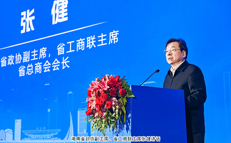 湖南省政协副主席、省工商业联合会主席、省总商会会长张健讲话。他表示,今天的会场让他感到了三个“热”,一是大家投资湖南的热情,二是雨花区产业发展的热度,三是新时代积极奋抢的热浪。2月17号,习近平总书记在北京出席民营企业座谈会并发表重要讲话。2月19日,中共湖南省委书记沈晓明主持召开民营企业座谈会。中共湖南省委副书记、省长毛伟明亲自率队到江苏走访慰问湘商企业。密集会议的召开充分体现了党中央及省委省政府坚持和落实“两个毫不动摇”的决心和对民营企业发展的坚定支持。湖南省工商联将一以贯之的发挥“联”的优势“商”的作用,秉承尊商、兴商、安商、爱商的优良传统,厚植特色、聚集动能、创优环境,为大家赋能添翼、排忧解难、保驾护航,用满满的热情和诚意栽好“梧桐树”,让企业安心创业、舒心干事、放心发展。