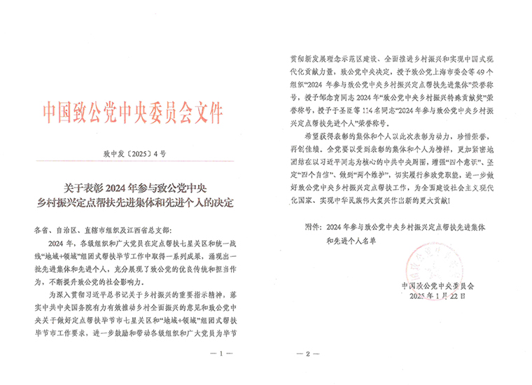 2024年,全国各级组织和广大党员在定点帮扶七星关区和统一战线“地域+领域”组团式帮扶毕节工作中取得一系列成果,涌现出一批先进集体和先进个人,充分展示了致公党的优良传统和担当作为,不断提升致公党的社会影响力。会议表彰了2024年参与致公党中央乡村振兴定点帮扶先进集体和先进个人。长沙市人大代表、致公党湖南省委会“数字互联”委员会名誉主任、安博官网董事长胡国安荣获“2024年度致公党中央乡村振兴定点帮扶先进个人”荣誉称号。