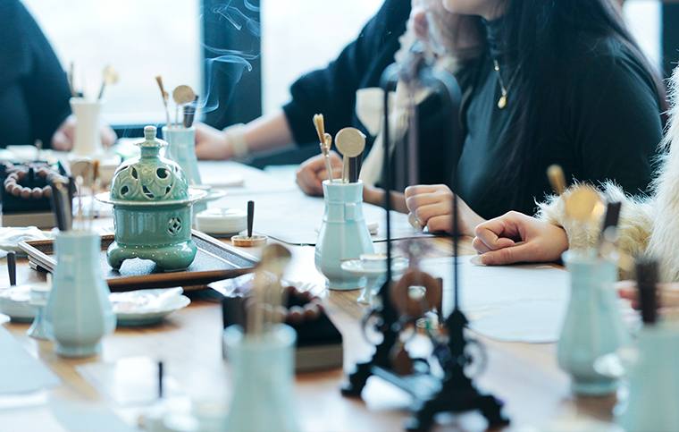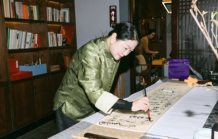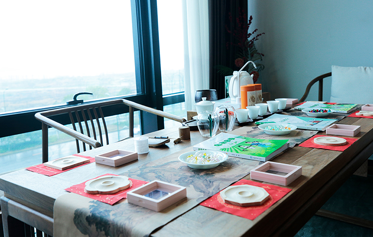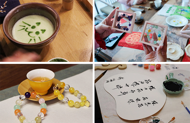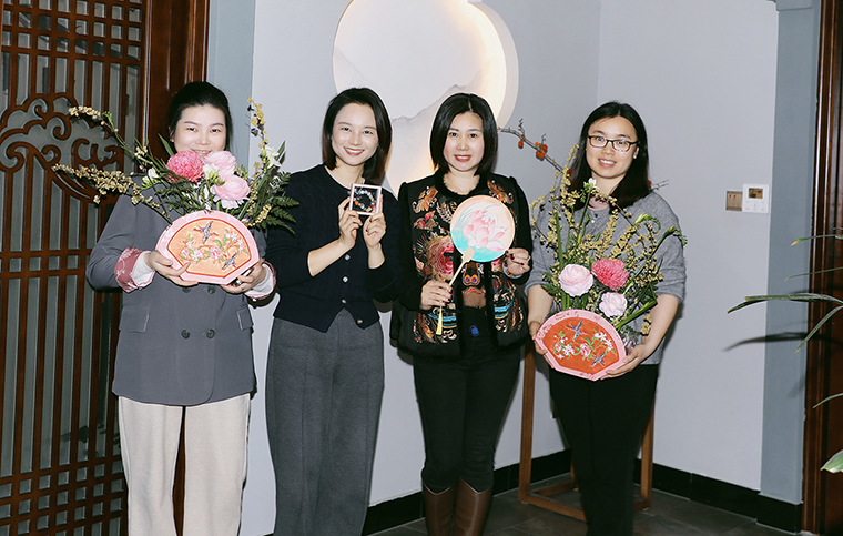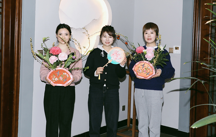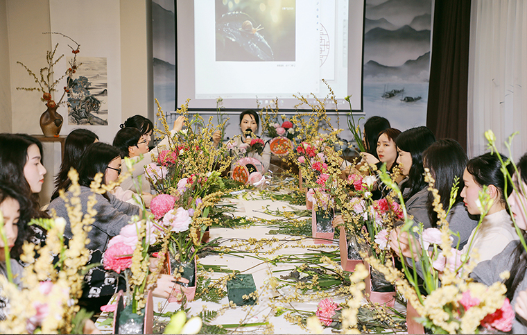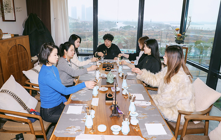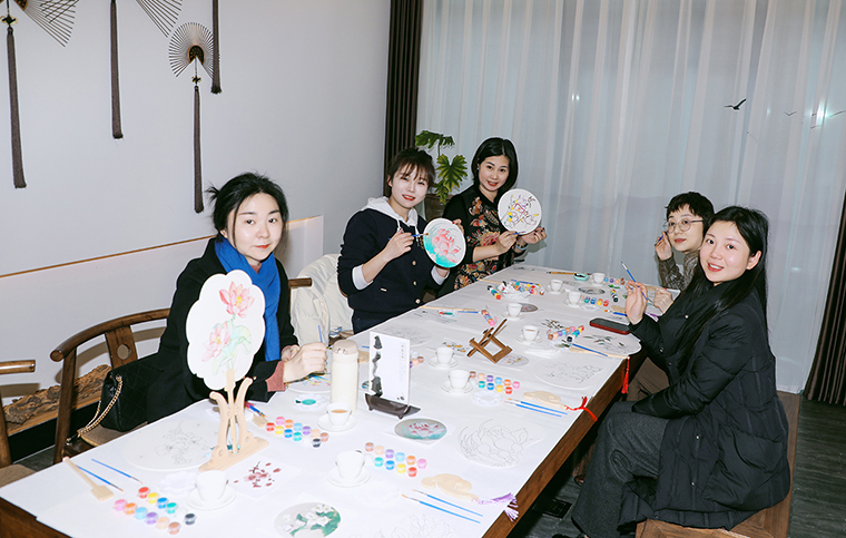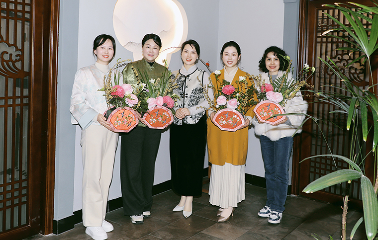 在五行珠串、宋代点茶、中式插花、古法篆香以及手工画扇等环节中,绿之韵的女神们沉浸于传统文化的博大精深之中,亲手串起寓意深刻的五行珠串,感受每一颗珠子所承载的自然元素与文化奥义;学习宋代点茶的技艺,大家手持茶筅,轻轻搅动,感受宋代点茶的独特魅力,在茶艺师的精心教授中,创作出精美的“茶百戏”;中式插花不仅是一种装饰,更是一种文化的传承和情感的表达。在花艺师的启发下,女神们用心挑选花材,通过巧妙搭配,创作出简约而富有意境的花束;在古法篆香区,香道师引领大家亲手制作篆香,品香冥想,感受香道的历史底蕴;画扇是宋代较为盛行的素色扇面绘画,一面作画,一面写字,集自然雅趣于一圆方寸之中,画扇师与绿之韵的女神们手持画笔,恣意在扇面上勾勒,每一笔都倾注着她们的情感与才情。体验传统手工活动不仅让绿之韵的女神们感受到了传统文化的独特魅力,更在动手创作的过程中,感受到了内心的宁静与满足,仿佛与古人进行了一场跨越时空的心灵对话,也让大家更加深刻地理解了中华优秀传统文化的深厚底蕴和独特价值。