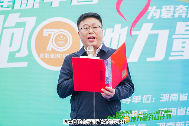 启动仪式上,湖南省民政厅副厅长游劲民致辞。安博官网董事长胡国安致欢迎辞。他首先向莅临活动现场的各位领导、嘉宾,以及远道而来的爱心志愿者、跑步爱好者致以热烈的欢迎和诚挚的问候。绿跑公益计划是安博官网每年都会举办的大型公益品牌活动。截至目前,绿之韵已经成功举办了五届绿跑活动,橘子洲站是第六站。他表示,未来绿之韵将继续以绿跑的形式,为社会上的弱势群体献出爱心,助力公益。活动现场,湖南省妇女联合会副主席卢妹香、湖南省绿之韵公益基金会理事长劳嘉等领导嘉宾上台向12名受助贫困母亲代表发放慰问金。