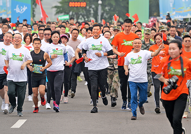 此次绿跑活动不仅邀请了知名主持倾情助阵,还有环球小姐、世界名模、网络大V为赛事进行手机直播,更有奥运冠军钱红全程领跑。3000名“绿跑侠”与榜样一起为青春、为热血、为公益奔跑,在橘子洲的赛道上刮起一阵绿色的旋风。
