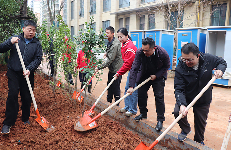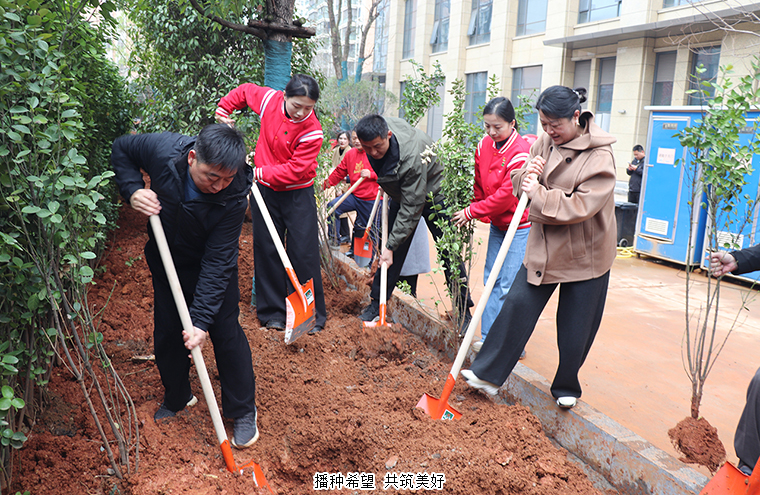 三月的风裹挟着春信的密语,将春意泼洒在绿之韵中心的园林间。3月11日,在植树节来临之际,绿之韵中心党支部以“播种希望 共筑美好”为主题,在绿之韵中心开展植树节主题党日活动。安博官网总裁劳嘉、绿之韵公益基金会秘书长蒋文、湖南绿之韵房地产开发有限公司总经理周君四,副总经理劳毅与绿之韵中心党支部书记徐继雷带领党员志愿者们共执春锄,以草木为墨,为绿之韵中心园林项目工笔春色。