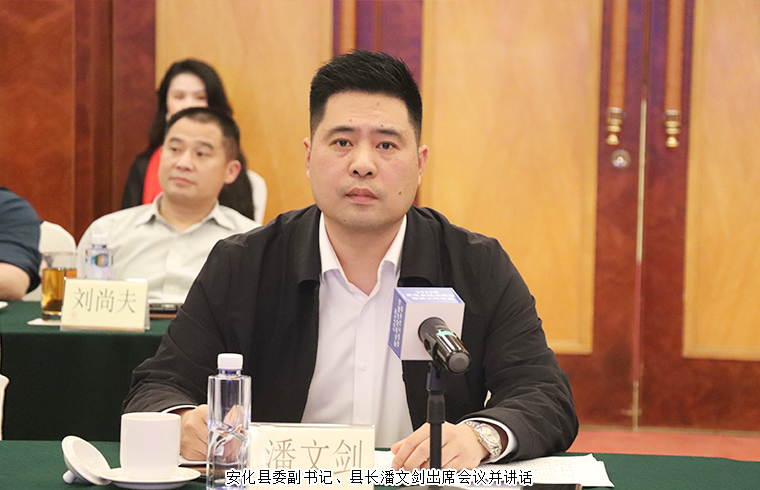 中共安化县委副书记、县长潘文剑代表县委、县人大、县政府、县政协和广大父老乡亲,向各位乡友表示亲切的慰问和崇高的敬意,向一直以来心系家乡,不遗余力支持家乡发展的各界代表,表示衷心的感谢。他期望各位乡友始终如一地关心支持安化,充分发挥自身优势,主动穿针引线、牵线搭桥,吸引更多的企业、技术、资金走进安化,汇聚安化,把个人智慧、成果、资源与安化发展结合起来,共同书写中国式现代化安化精彩篇章。