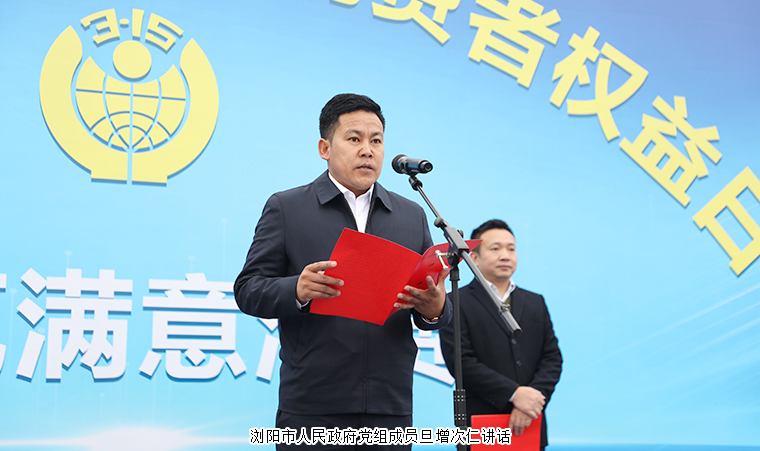 浏阳市人民政府党组成员旦增次仁讲话。他首先代表浏阳市人民政府,向全市广大消费者表示节日的问候,向辛勤工作在消费维权一线的工作人员致以崇高的敬意,向长期以来积极参与、关心、支持消费者权益保护事业的社会各界朋友表示衷心的感谢。他表示,2025 年“十四五”规划收官之年,我们要全面把握当前消费者权益保护事业的发展形势,紧紧围绕“共筑满意消费”这一主题,全力做好今年的消费者权益保护工作:一是强化消费职能,推进协同共治;二是强化管理宣传,倡导理性消费;三是强化行业自律,共担社会责任。我们要以此次活动为契机,一起携手、共同努力,为广大消费者共同营造一个安全、公平、诚信、便利的消费环境,为高水平建设县域经济新典范、共同富裕先行区,奋力谱写中国式现代化浏阳篇章贡献力量。